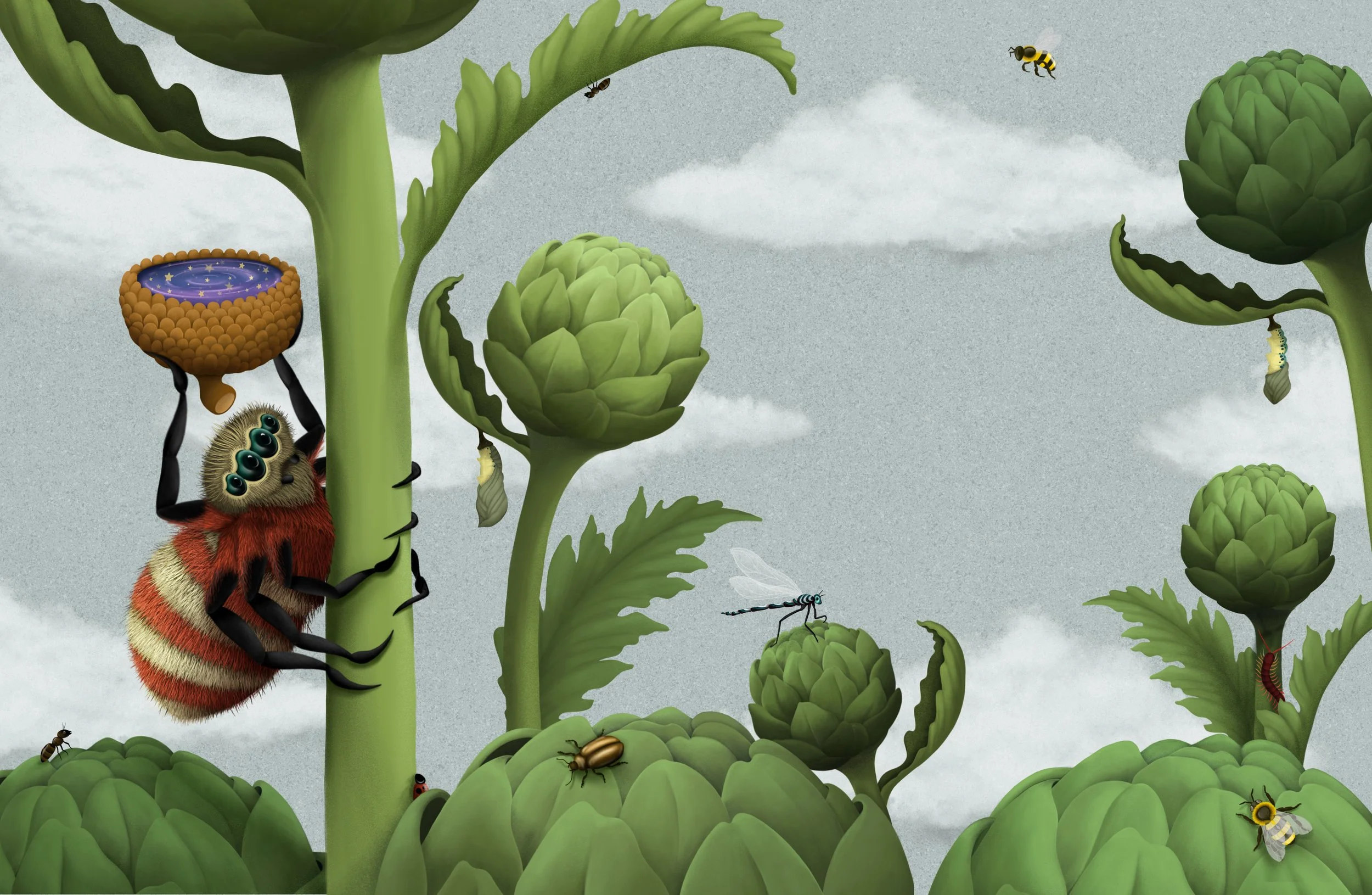 “The Star-Speckled Garden” is a 40-page picture book for all ages. Featuring bold, whimsically detailed, full spread illustrations from start to finish, this 40 page picture book spins a beautiful tale, created in full collaboration with Benji Waters.