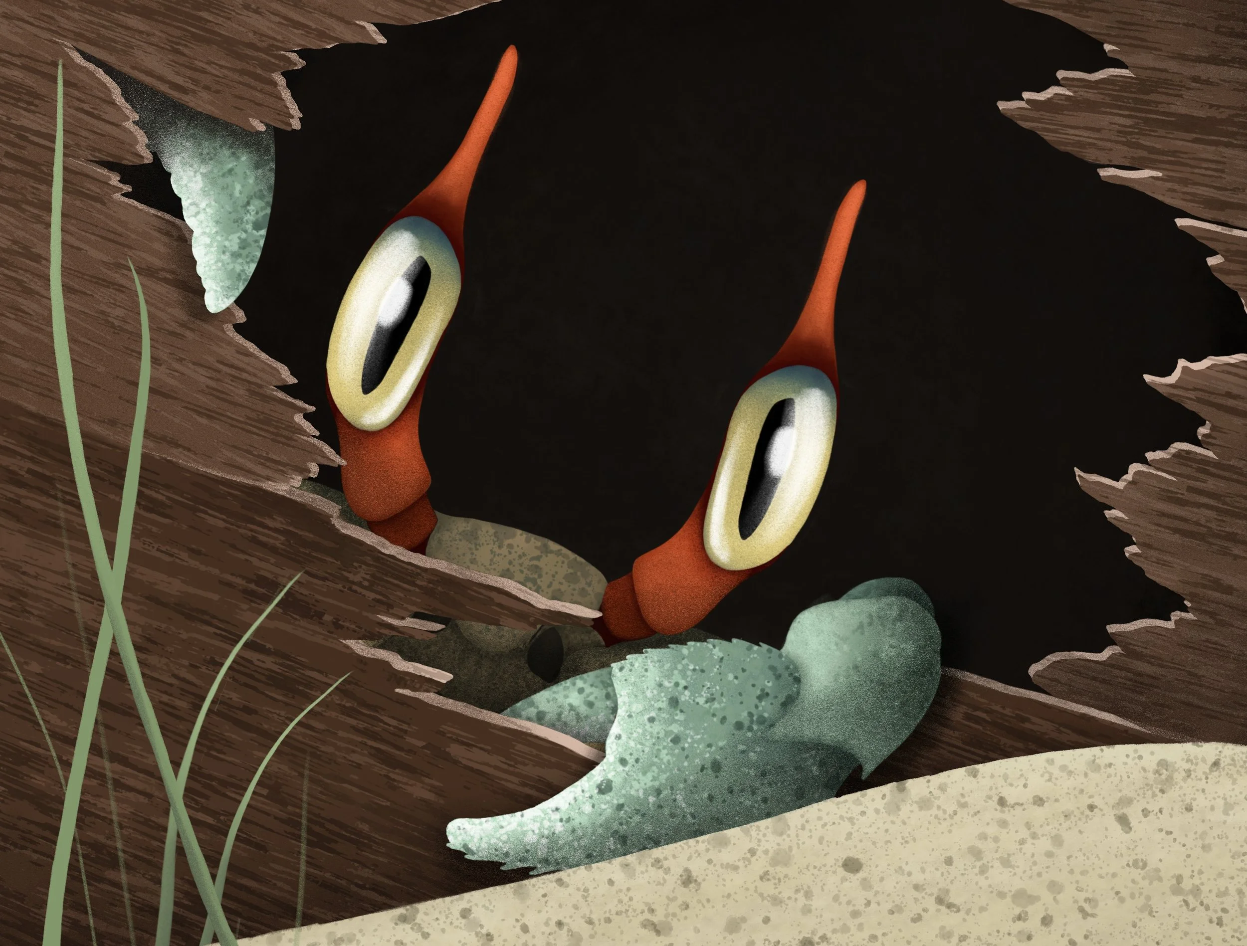Illustration concepts for a children’s book about a crab who spends its days confined to a shipwreck, and sets out on an adventure to discover that it’s a choice to be alone and crabby.