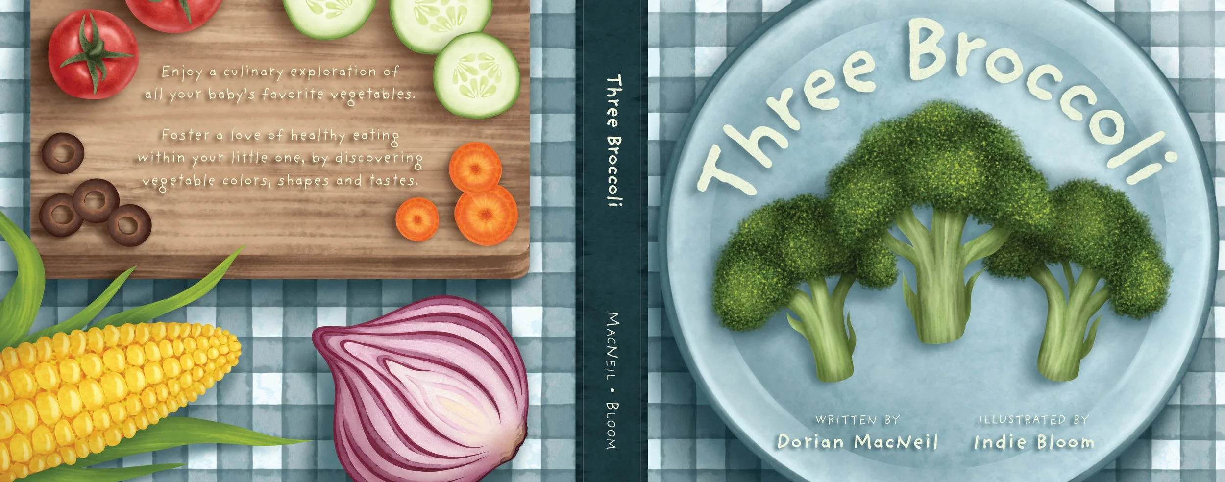 A 12-spread children’s board book written by Dorian MacNeil, featuring full-page spreads and spot illustrations, to teach very young children about counting and vegetables. This baby book and two others in collaboration with MacNeil are set to be published and on shelves by the end of 2025.